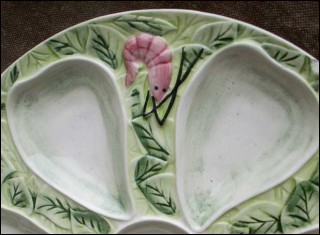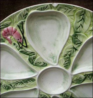 French Majolica Oyster Plate Shrimp Giroud Moing 1950