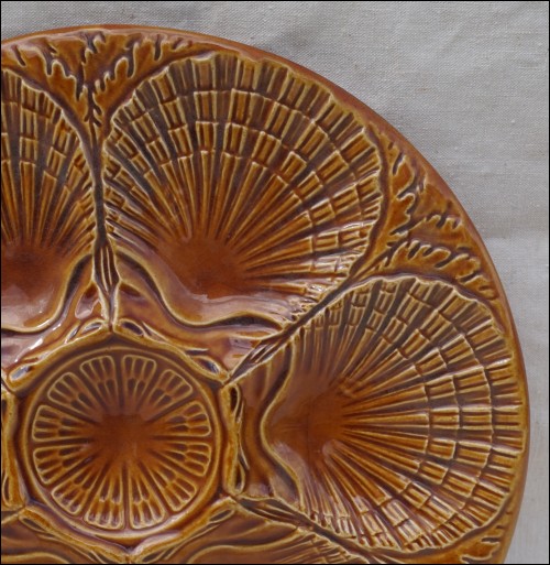 French Oyster Plate Faience Brown Sarreguemines 1960