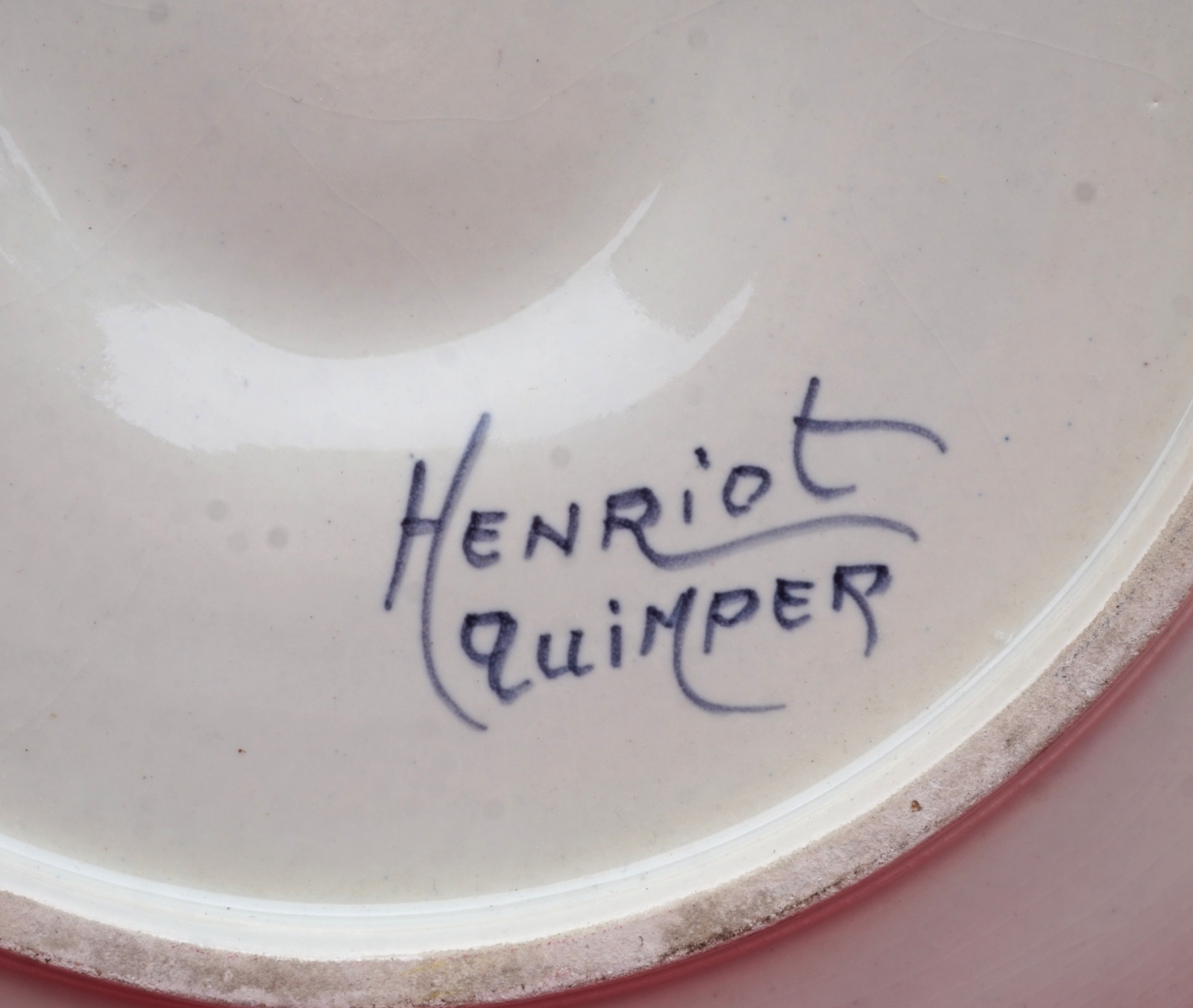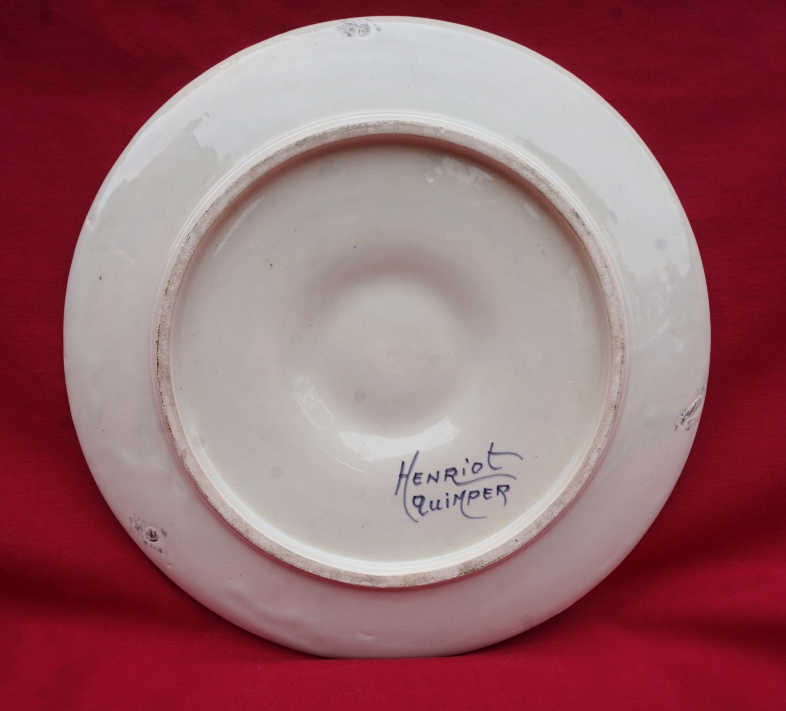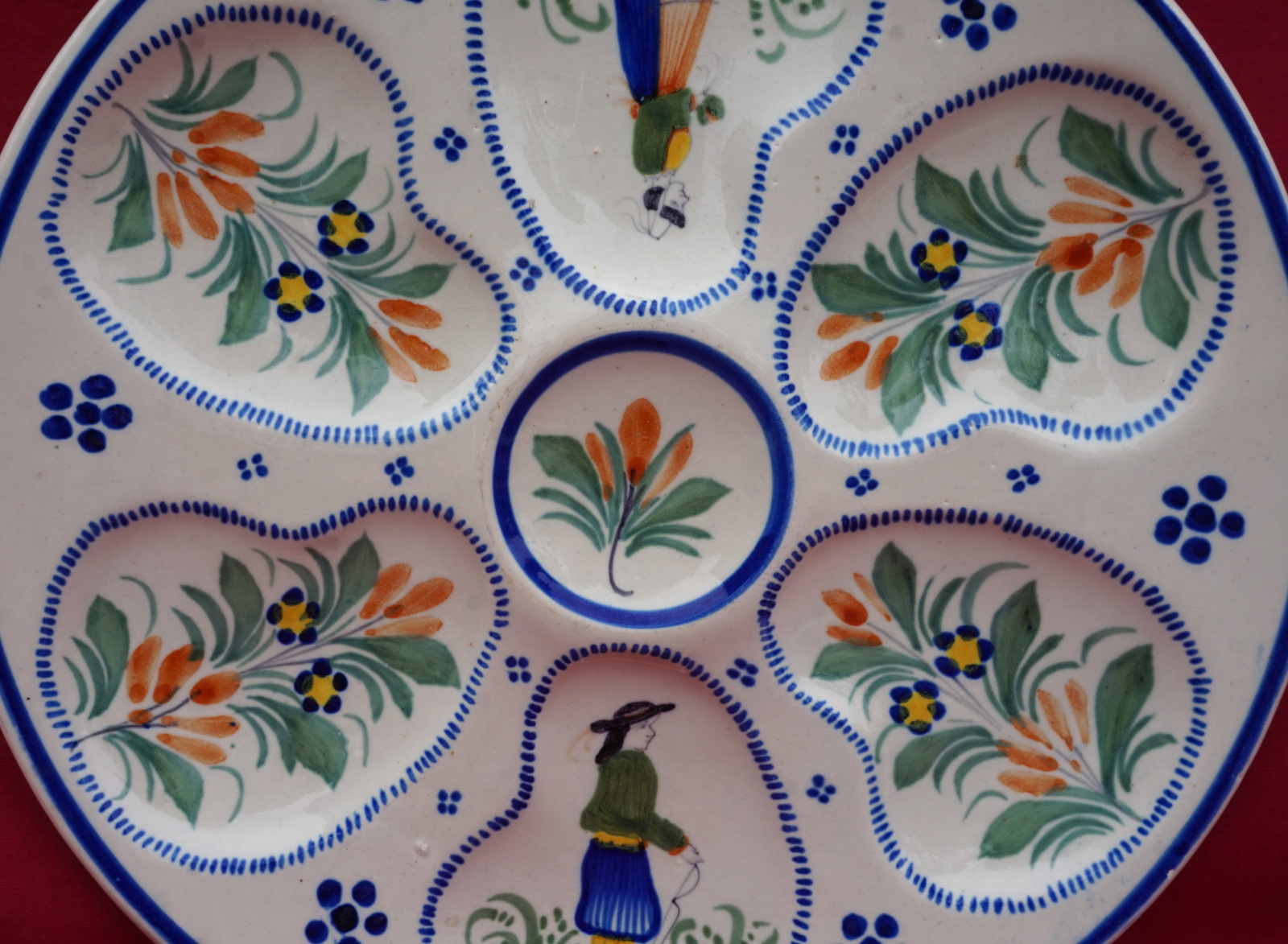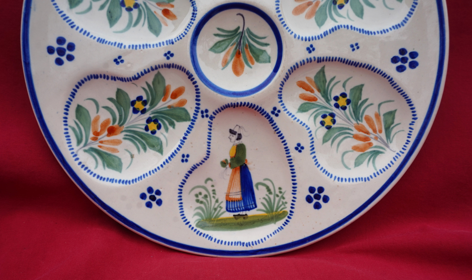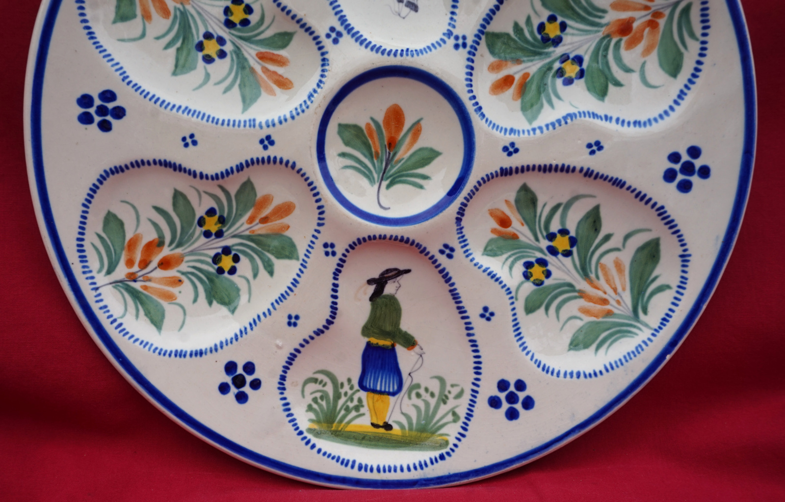 HENRIOT QUIMPER Oyster Plate Couple Breton Flowers