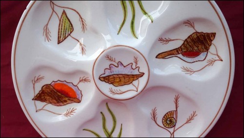 HENRIOT QUIMPER Oyster Plate Trevoux Shell Sea Life 1950 A