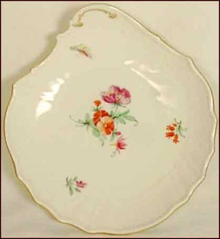 Assiette à huître individuelle, de la célèbre manufacture de Berlin, ancienne manufacture impérial allemande, née vers 1830. Elle est peinte à la main à la façon du dix-huitième siècle, sur une pâte en relief comme Sèvres et Meissen. La dorure n' est pas usée, cette coupelle à sûrement très peu servi. La photographie ne rend pas honneur à la blancheur de la porcelaine sans défaut. Elle est en très bon état et signée sur son fond de la marque au sceptre sous couverte de la manufacture, du KPM sur couvert et des marques de modèle et de peintre. Hauteur 16 cm, largeur 14,5 cm.