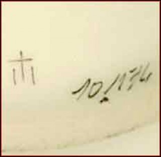 This individual oyster plate has been made by the famous Berlin manufacture around 1830. It's hand painting pattern like 18th century decor on paste with relief. The golden edge is in good condition. The picture do not justice to the great white of the porcelain. Good condition, signed on the back with the specter marks and KPM with drawer and model marks. 6"1/4 by 5"3/4.