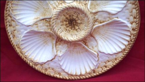 Oyster Plate Faience Brown Basketweave Longchamp 1970