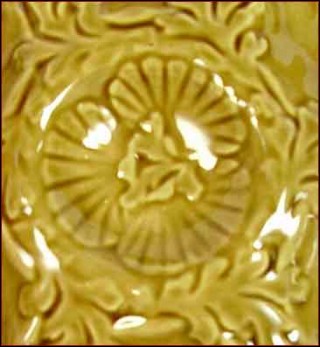 Assiette à huître en barbotine de la manufacture de Gien, née vers 1960. Elle présente six compartiments pour les coquillages et un central d'ornement. Elle est signée sur son fond de la manufacture. Elle est en bon état. Diamètre 24,5 cm.