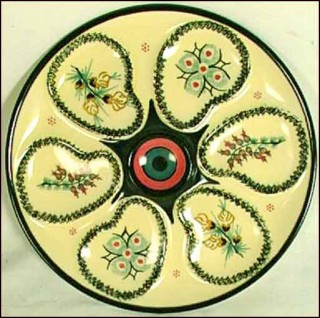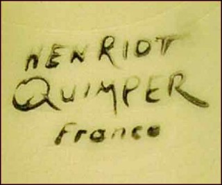 This oyster plate has been made in the famous Henriot Quimper factory around 1950. It's shaped with 6 compartments and one in the middle for the pattern. The hand painting pattern depicts wild flowers on a cream background It's signed on the back with the factory marks. 9"5/8 diameter. Good condition.