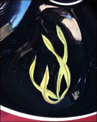 Assiette à huître de la manufacture Henriot de Quimper, née vers 1960. Exécutée par le célèbre peintre décorateur Guy Trévoux. Elle possède six compartiments à huître et un pour le beurre, elle est ornée de motifs des fonds des mers. Elle est en bon état, des usures sur le vernis dû à l'usage. Diamètre 22 cm.