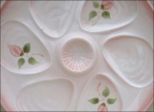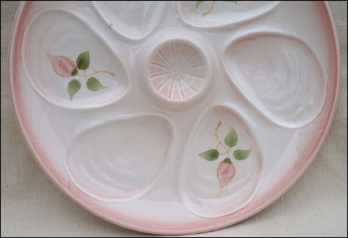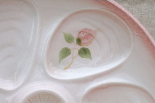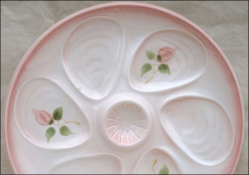 Oyster Plate Rose Hand Painted Faience Salins 1950
