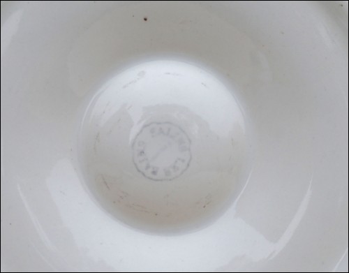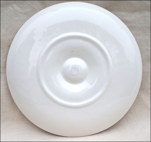 Assiette à huître de la manufacture de Salins, avant que l'affaire appartienne à la Société d'Exploitation des Faïences de Salins, avant 1950. Elle est à six compartiments pour les huîtres et un pour le citron. Elle est en bon état et signée sur son fond. Diamètre 24 cm.