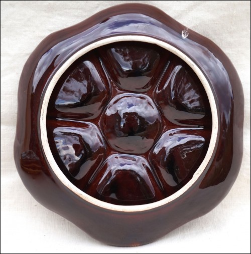 Vintage six compartments and one central shaped oyster plate in hand painted faience made by Vallauris during the 1970's. 9 1/2" diameter. Perfect condition as presented on the following pictures.