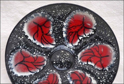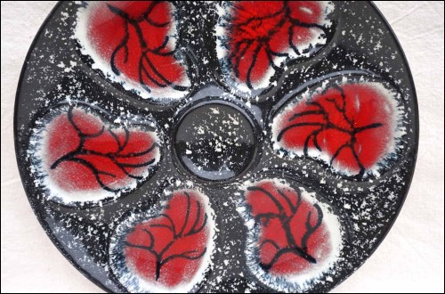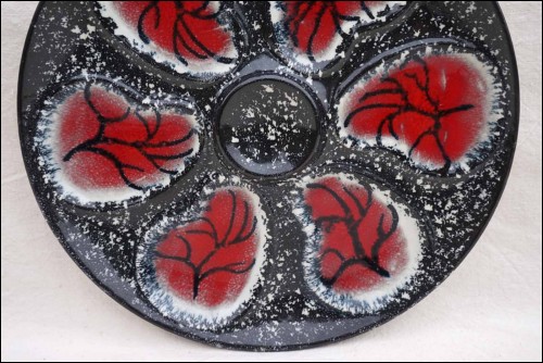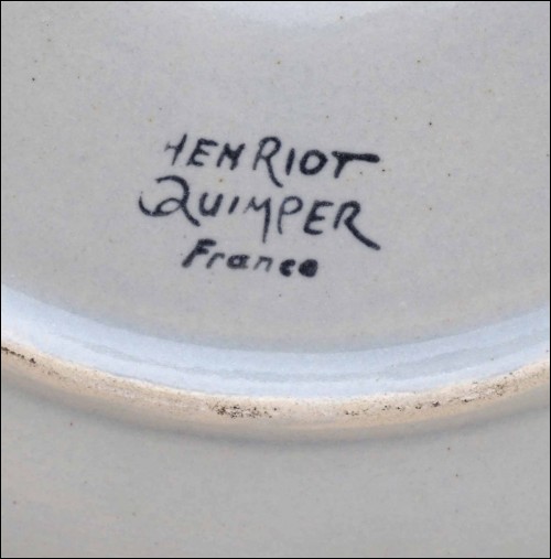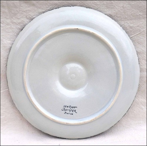 Vintage oyster plate with granite decor made by Henriot in Quimper during the 1960's. It's signed on the back Henriot Quimper France. 9 1/2" ( 24cm) diameter. Perfect condition as shown by the following pictures.
