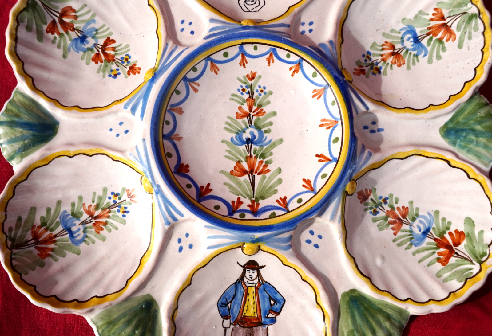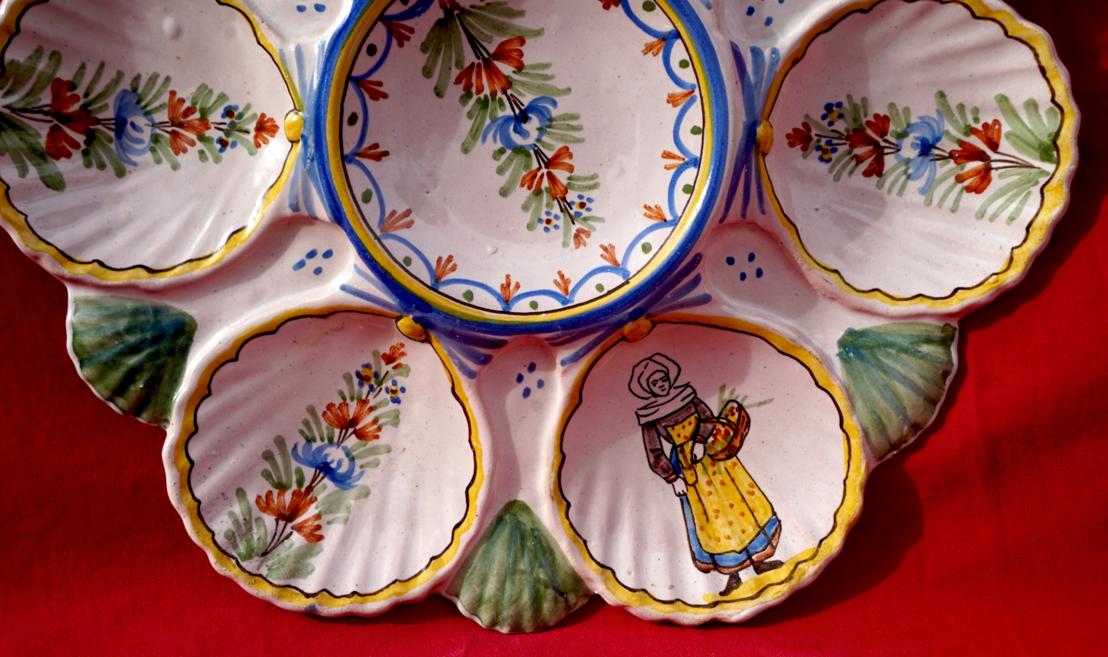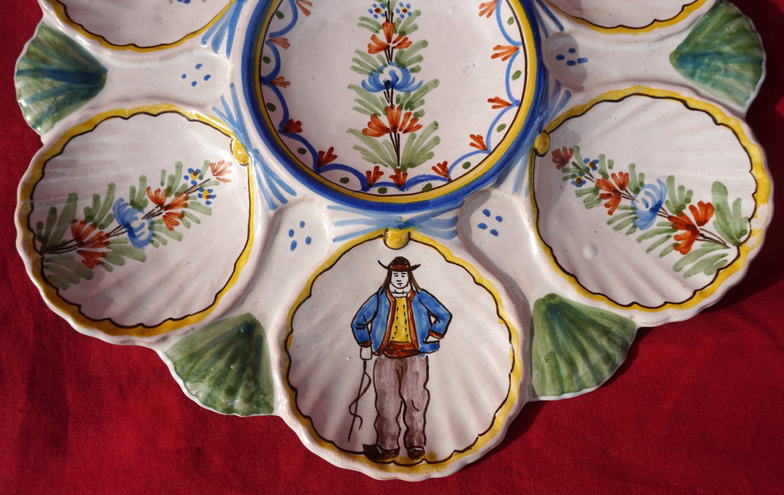 QUIMPER HR Oyster Plate Breton Bagpipe Whip Faience 1900's A