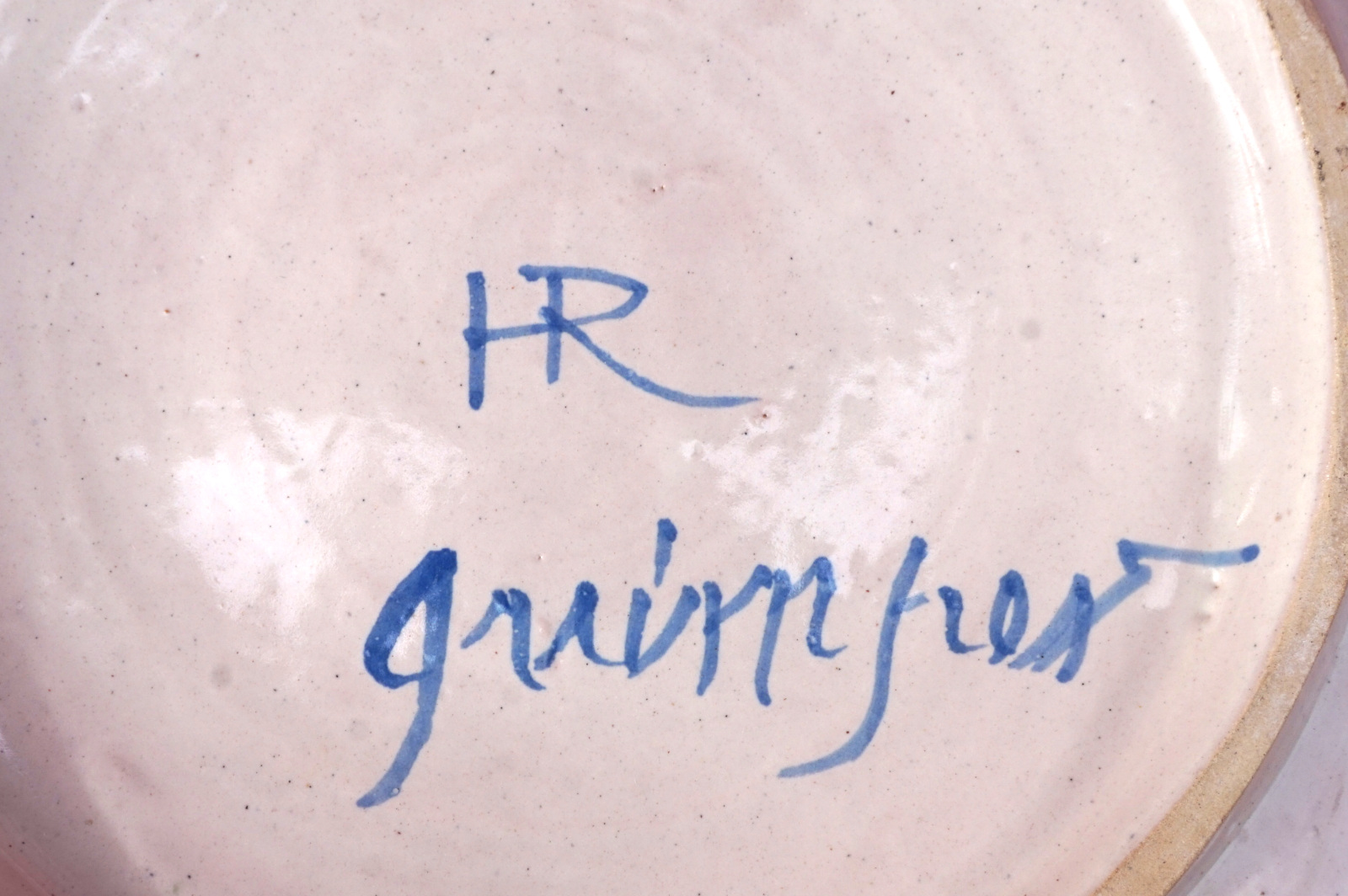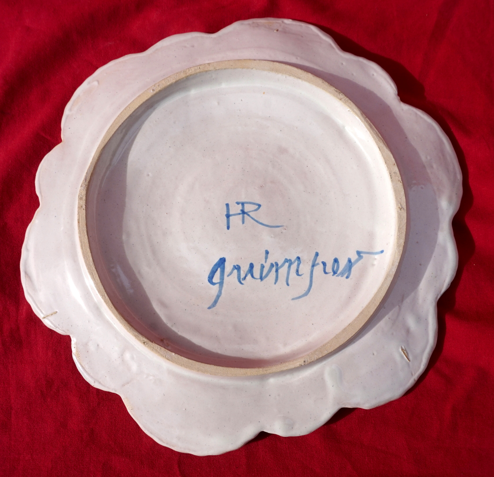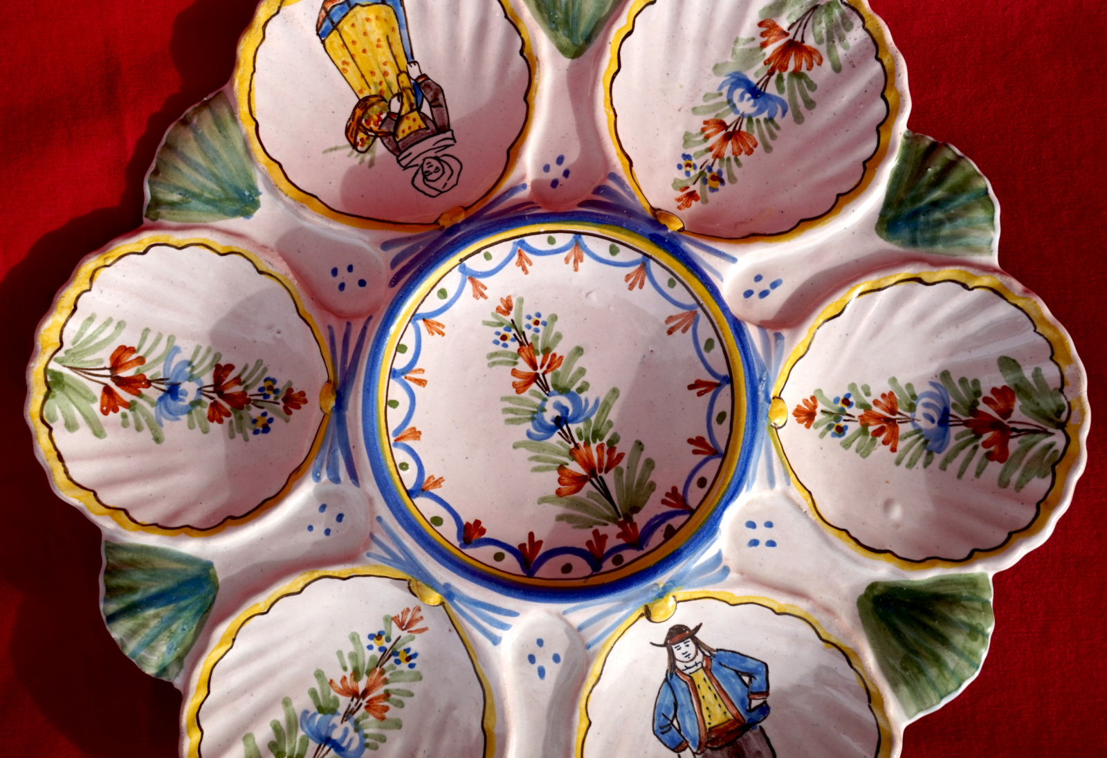 QUIMPER HR Oyster Plate Breton Bagpipe Whip Faience 1900's A