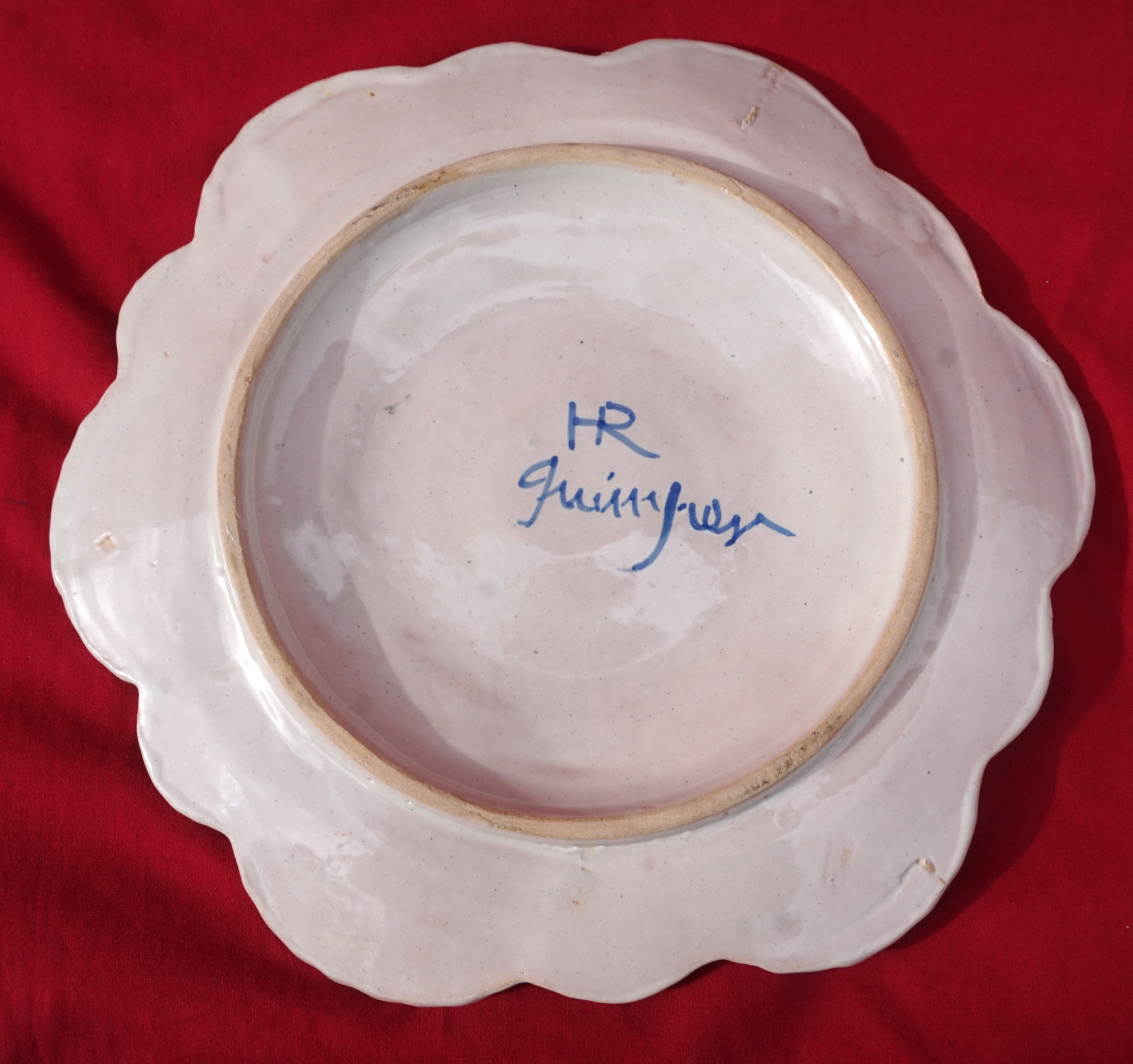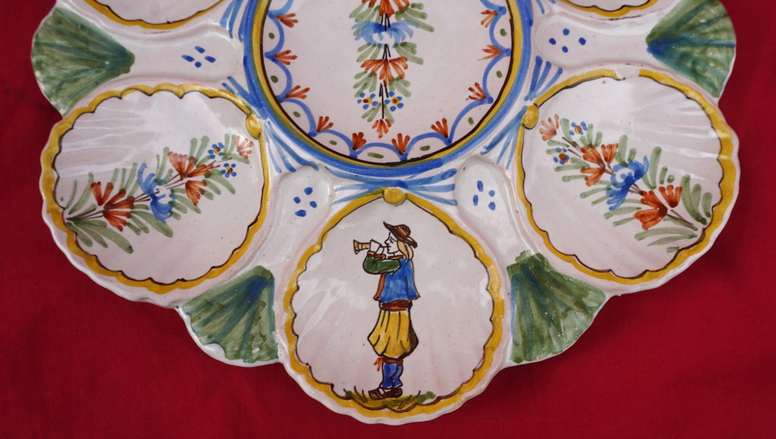 QUIMPER HR Oyster Plate Couple Breton Bagpipe Player Faience 1900's B