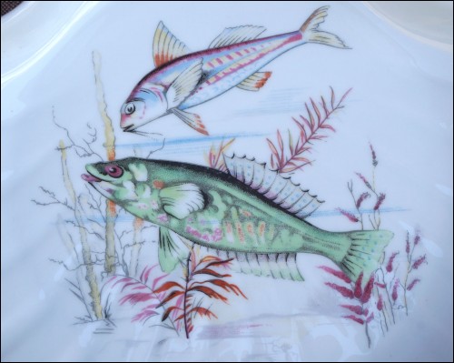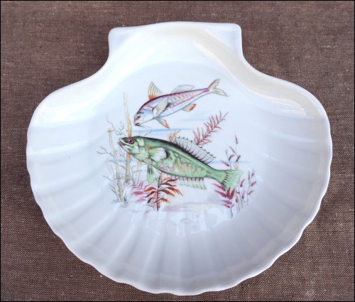 Sea Fish Scalloped Oyster Plate Mehun Porcelain 1960 B