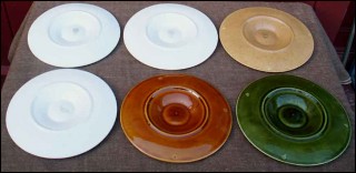 Set of 6 oyster plates with same shape and differents decor made by the famous Longchamp factory on France during the 1960's. The various decors are hand paintings. Good condition they are signed on the back. 9 3/4" diameter.