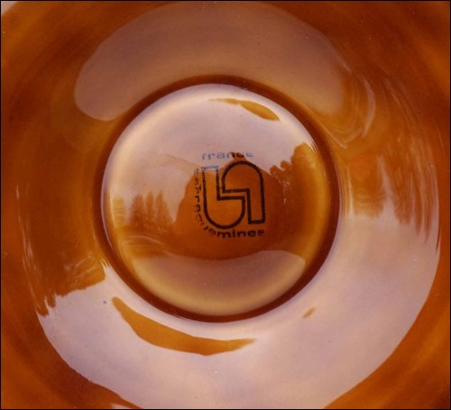 Assiette à 6 compartiments pour les huitres et 1 pour le citron de la manufacture de Sarreguemines né vers 1970. Les compartiments sont en forme de coquilles St Jacques. Bon état signée au dos de la marque de la manufacture. Diamètre 23,5 cm.