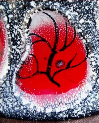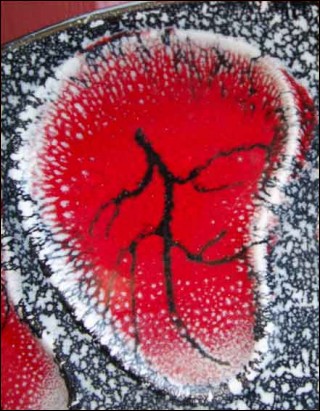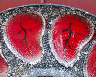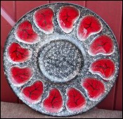 French Majolica Red Black Oyster Master Dish Henriot Quimper 1960's