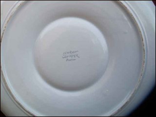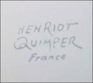 Rare 12 shell compartments and one central shaped oyster master server dish in french majolica made by the famous henriot Quimper factory during the 1960's. The hand painted decor has great color of reb black and granite enamel. Perfect condition. 13"3/8 diameter. Signed Henriot Quimper on the back.