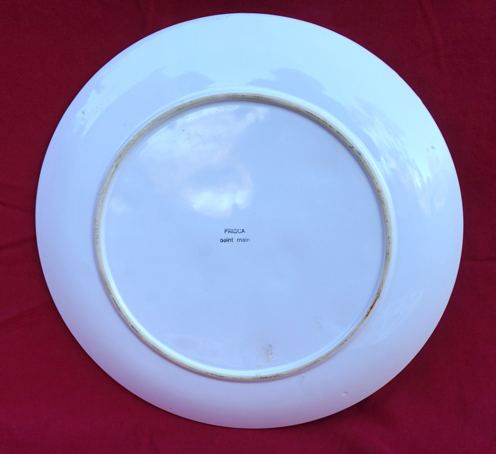 Plat à huitres pour 12 coquillages en faience peinte à la main modèle Prisca manufacture de Pornic vers 1950. Il est signé sur son fond. Diamètre 33 cm. Parfait état.