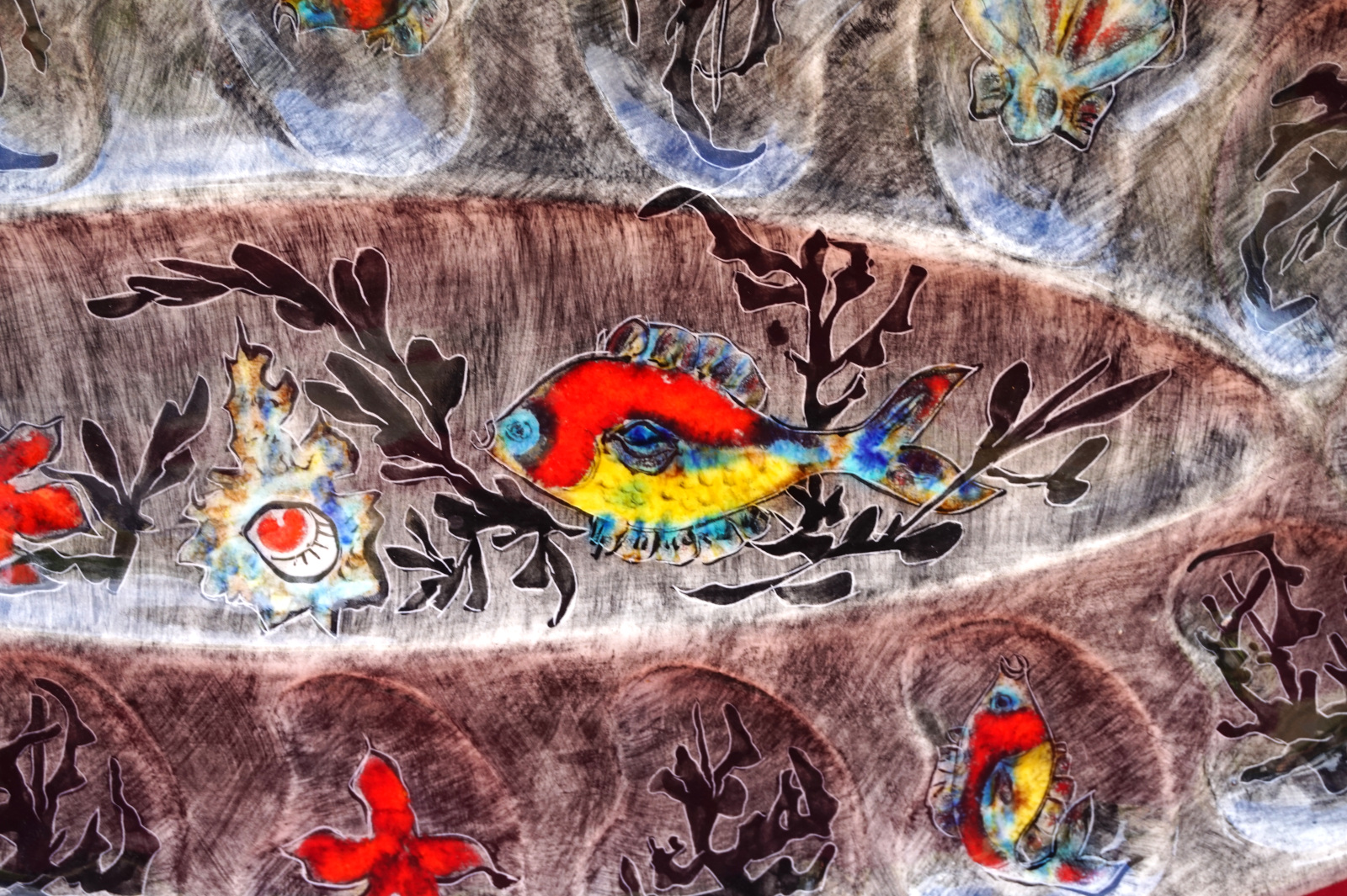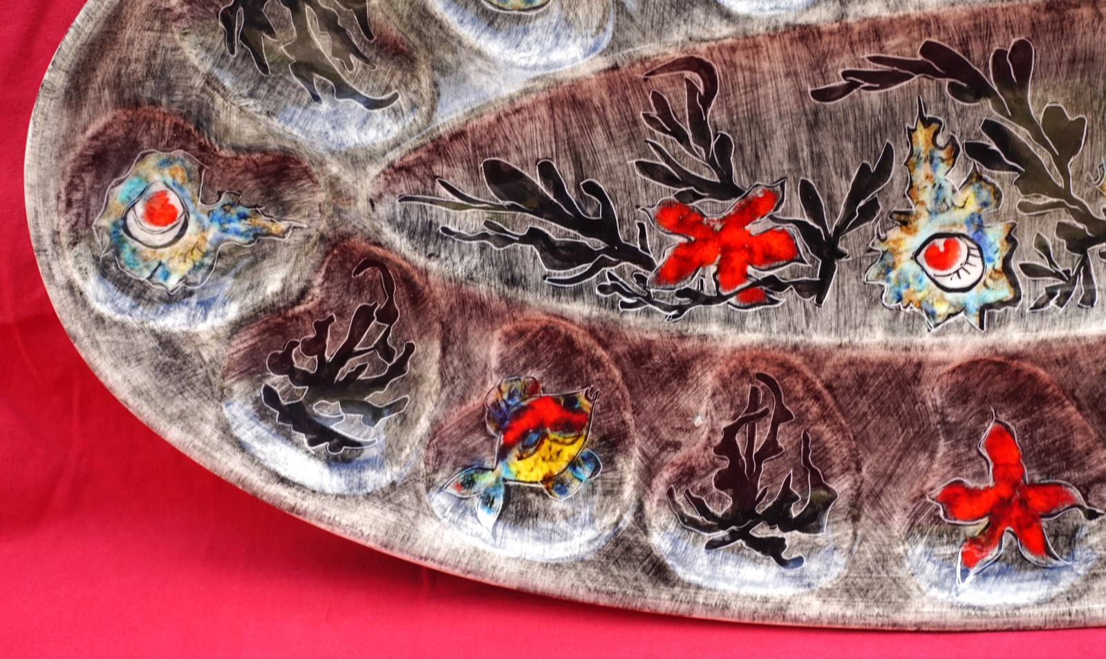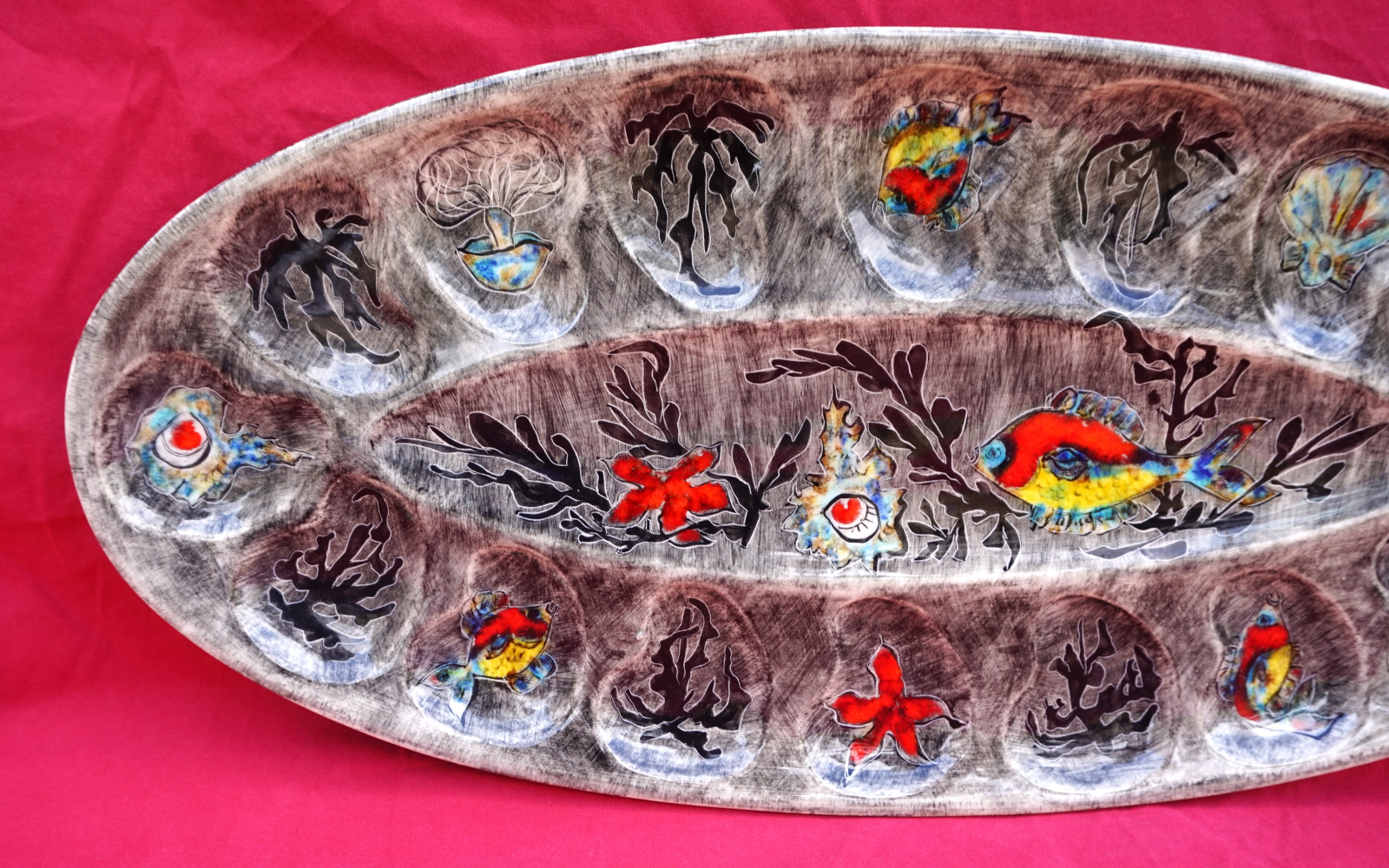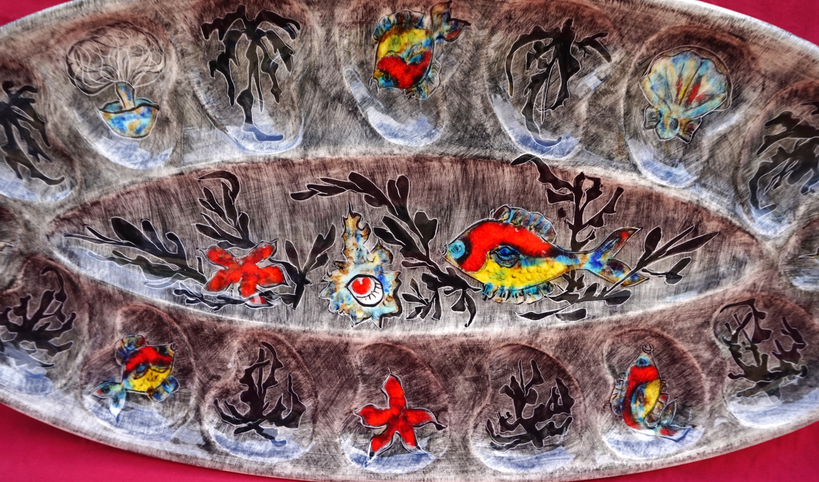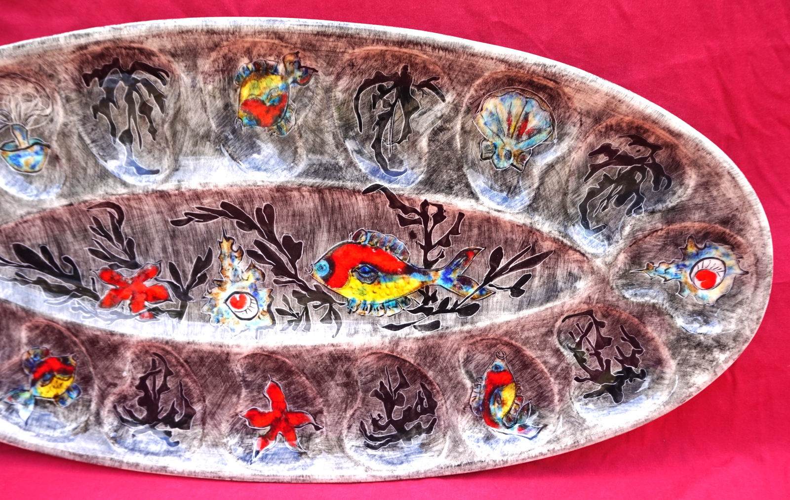 QUIMPER YOUEN Large 21 1/2" Oval Server Platter Sealife Fish Seaweed