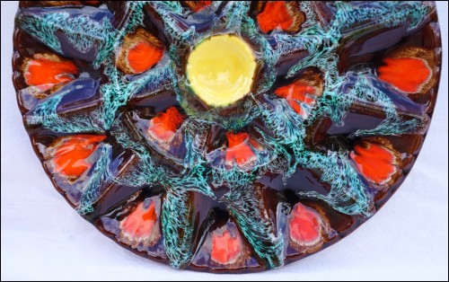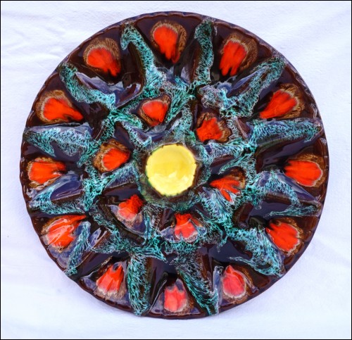Plat de service à 18 compartiments pour les coquillages de Vallauris. Parfait état. Diamètre 36 cm, profondeur 5cm.