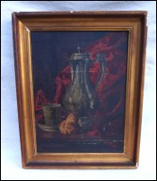 B BALDI Pewter Pitcher Still Life Framed Oil Canvas Painting Paris 1891