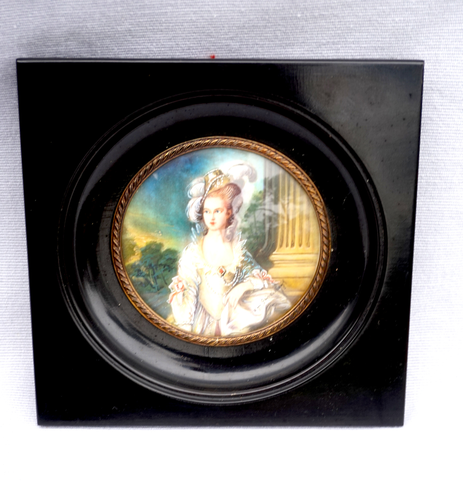 Miss Graham Framed Ivory Miniature Painting from Gainsborough work Mid Century