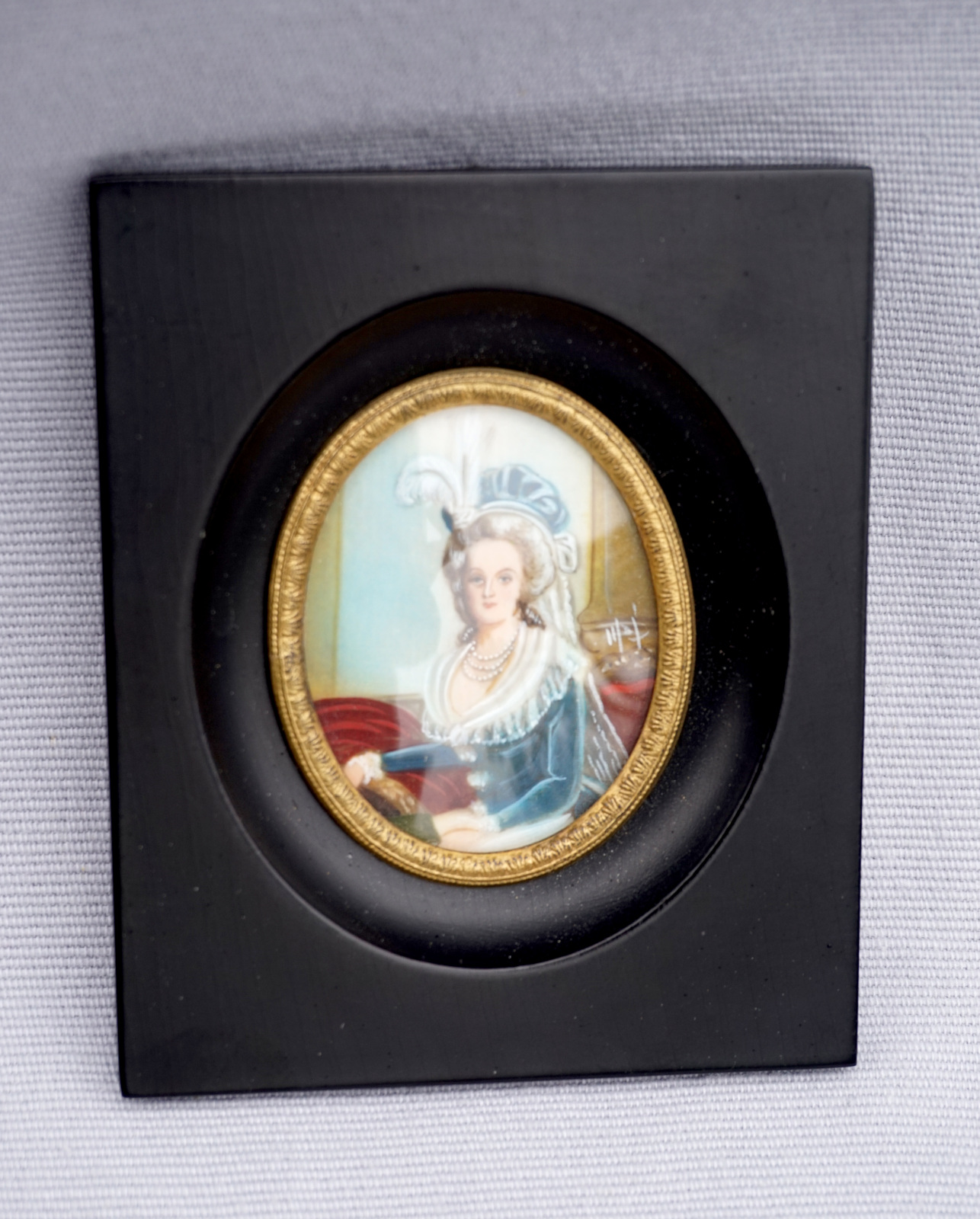 Queen Marie Antoinette Framed Miniature Ivory Mid Century