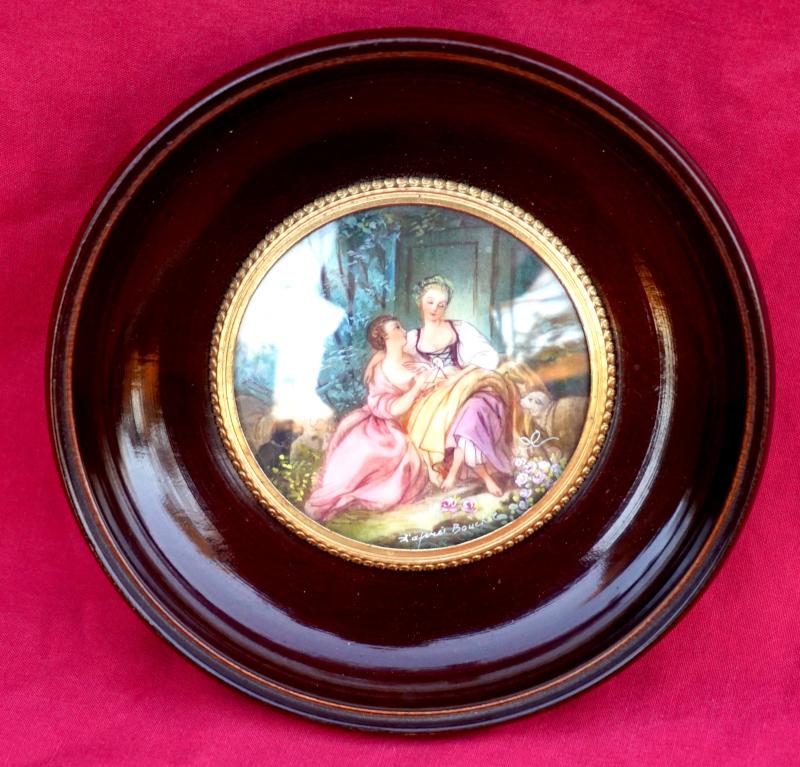 Framed Miniature Painting Young Lady from Boucher Work Vintage