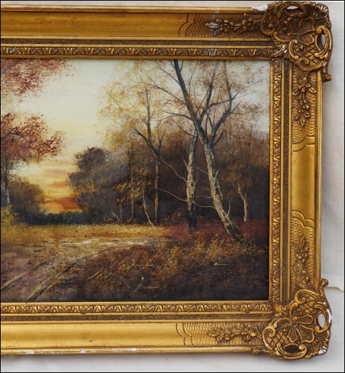 Pendant d'huiles sur toile de l'école de Barbizon, signé Lionel, XIXème siècle. Chemin en lisière de forêt de fontainebleau et bords du Loing près de Moret-sur-Loing, région appréciée par les grands peintres pour ses paysages. Les cadres en stuc doré sont légèrement abîmés, les toiles sur châssis sont en très bel état, ancienne restauration sur le bord de rivière. Format des toiles : hauteur 27,5 cm, largeur 59,5 cm.