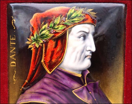 DANTE Portrait French Framed Enameled Painting Limoges 19 th Century