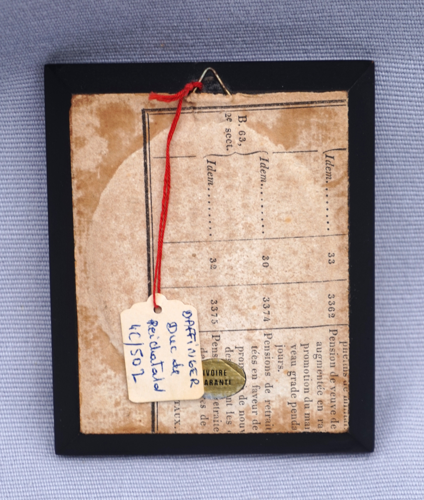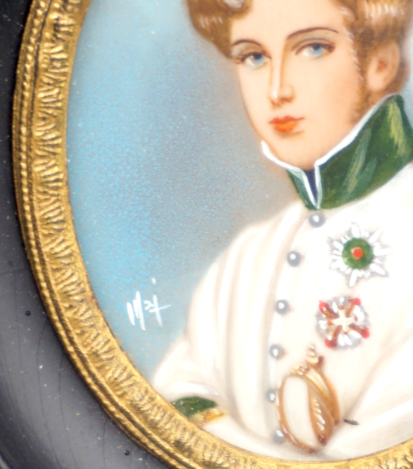 Miniature sur ivoire du Duc de Reichstadt dit L'Aiglon d'après Moritz Daffinger miniature encadrée, vers 1950. Dimensions du cadre 9.8 cm par 8.2 cm, pour la miniature 5.5 cm par 4.3 cm. Parfait état.