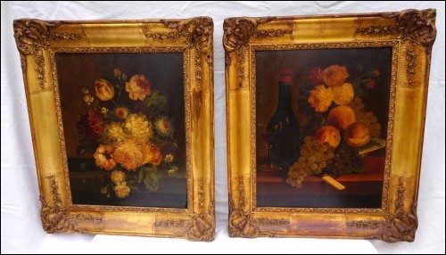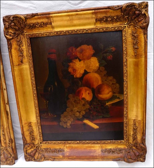 Still Life Original Oil Painting Panel Pair Gilt Framed Large 24" by 20" French 19th C