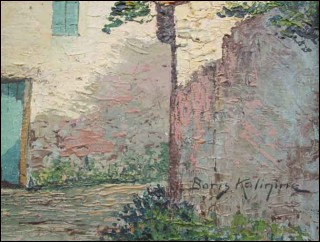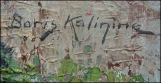 Village oil on canvas made by the famous artist Boris Kalinine during the middle of the 19th century. This oil is signed in the right down. Good condition the canvas has a litlle tear as you can see on the pictures below. 10"1/2 by 13"1/2