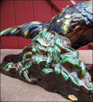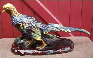 Large Golden Pheasant French Majolica Jaget 1940 Art Deco