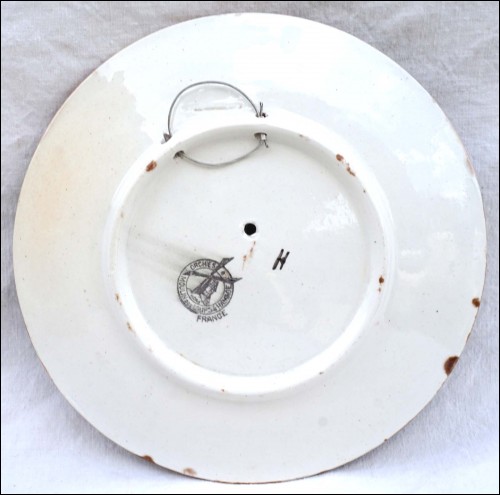French trompe oeil hand painted majolica plate made by Orchies Moulin aux Loups during the 1900's. It's signed on the back. 8 1/8" (20.5cm) diameter, 2 3/8" (6cm) height. Good condition two tiny glaze shortages as shown by the following pictures.