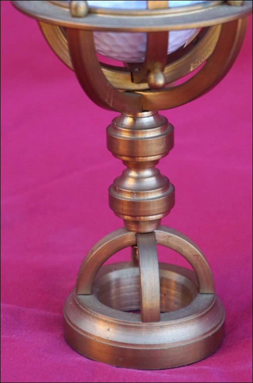 Armillary sphere miniature hand crafted brass with golf ball made during the mid-century. 5 7/8" (15cm) height, 3 3/8" (8.5cm) diameter. Perfect condition as shown by the following pictures.