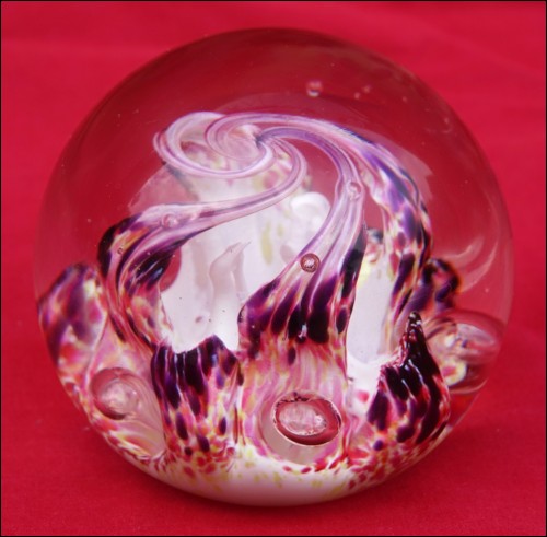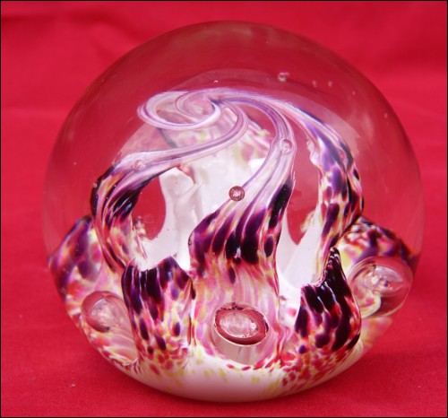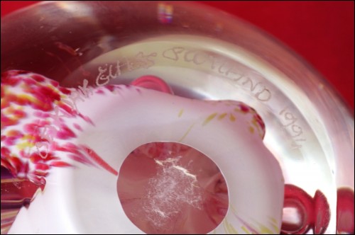 Scotland Art glass paperweight made by Selkirk factory in 1994. Etched signature on the base "Selkirk Glass Scotland 1994". 3 3/8" (8.5cm) diameter, 3" (7cm) height. Perfect condition as shown by the following pictures.