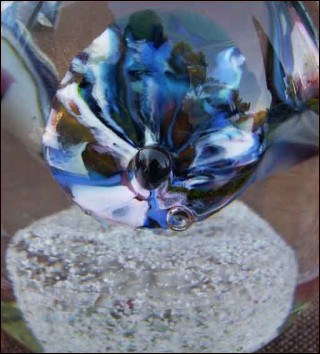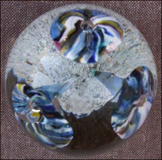 art crystal glass paperweight showing 3 trompet flower with controlled