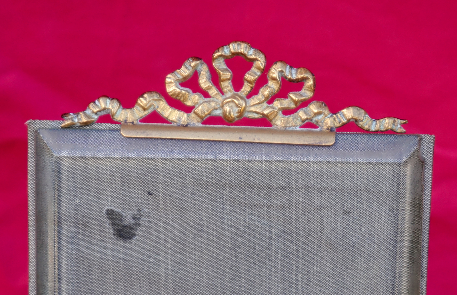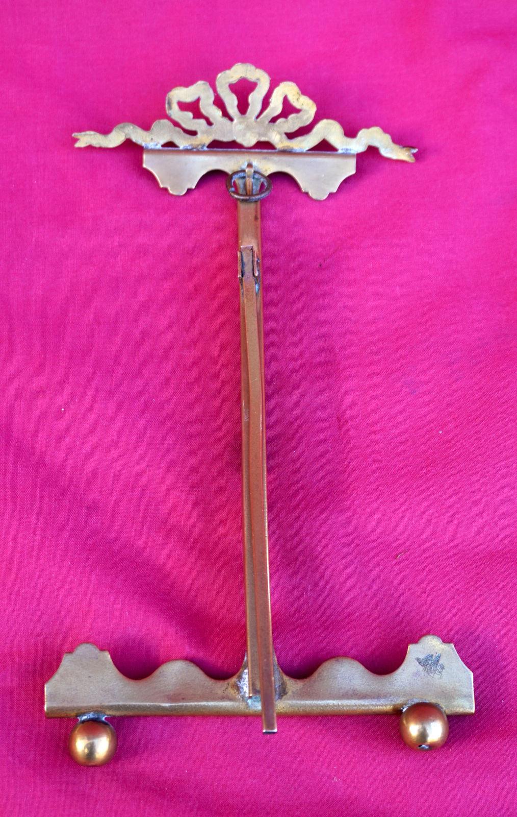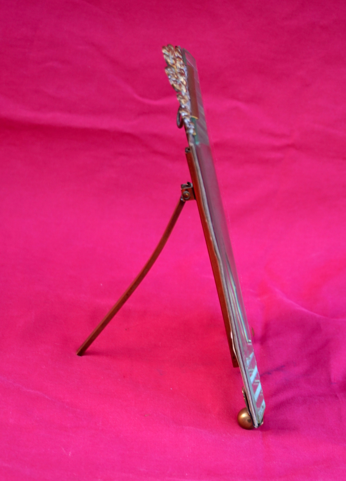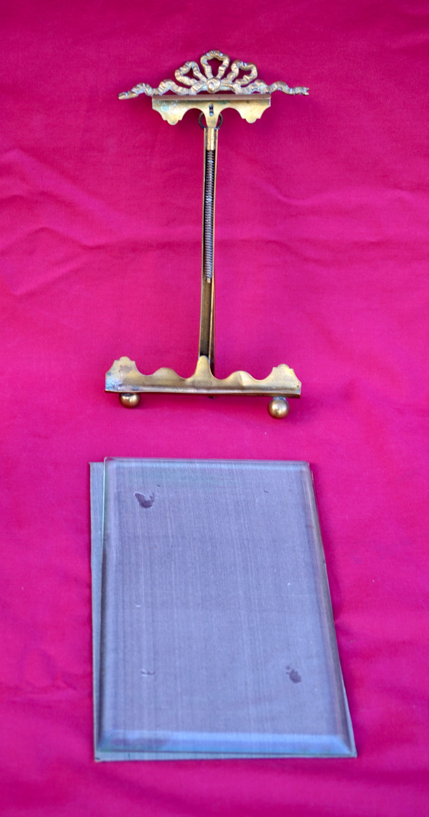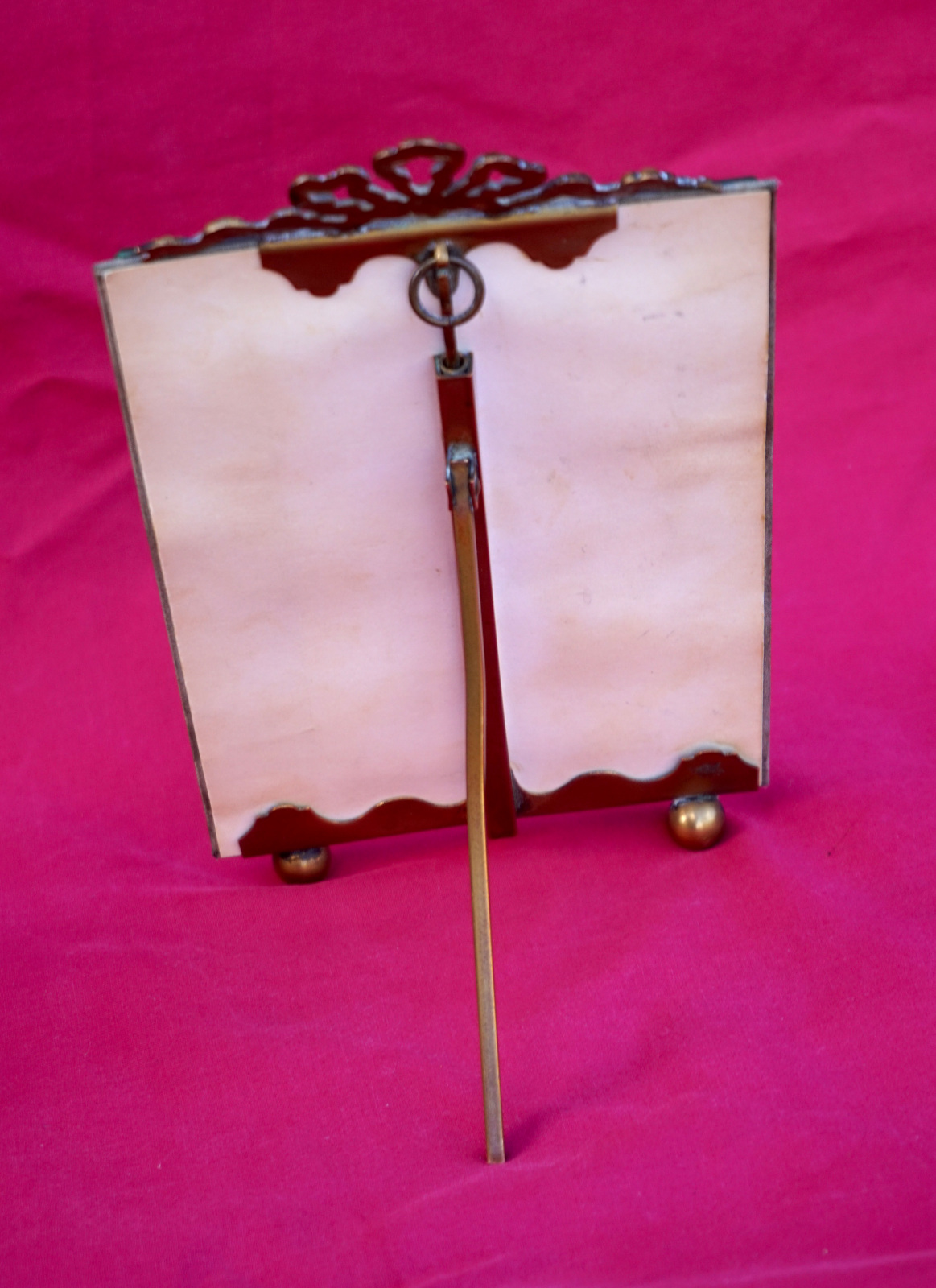 Adjustable Folding Easel Picture Frame Brass Ribbon Beveled Glass 1900'