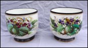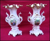Gilt Hand Painted Porcelain Pair Vases Violin Drum Paris 1900