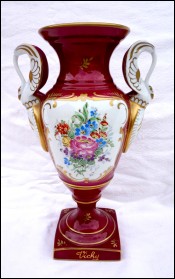 Sevres Style Hand Porcelain Vase Ruby Gold Flowers Swan Handles