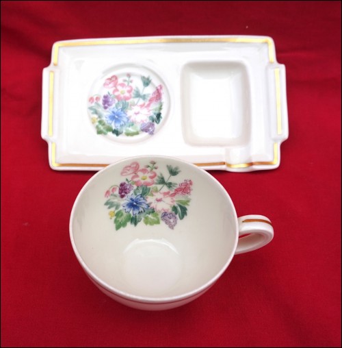 Th HAVILAND Limoges Porcelain Coffee Cup Ashtray Saucer Flowers Gilt 1950's