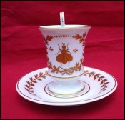 French Empire Gilt Old Paris Porcelain Imperial Bee Cup and Saucer Early 19th C