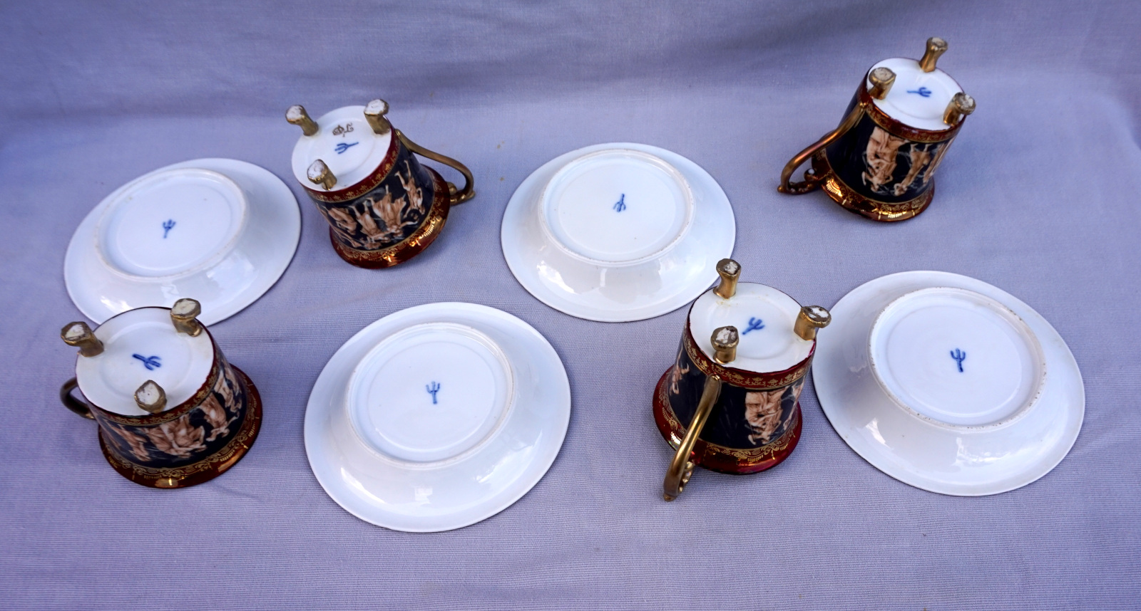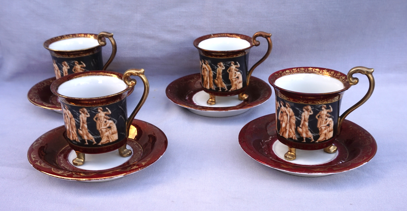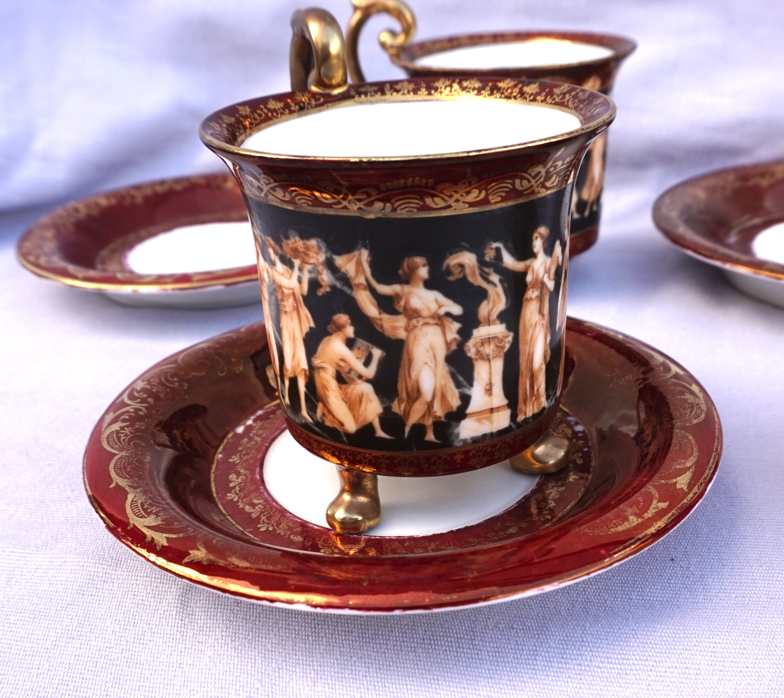 4 Cup & Saucers Mythical Scene Erdmann Schlegelmilch 1850