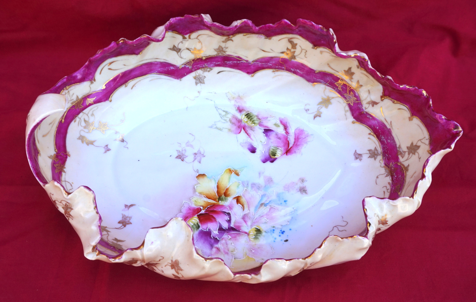 Bohemian Czech Art Deco Hand Painted Porcelain Leaf Shaped Bowl