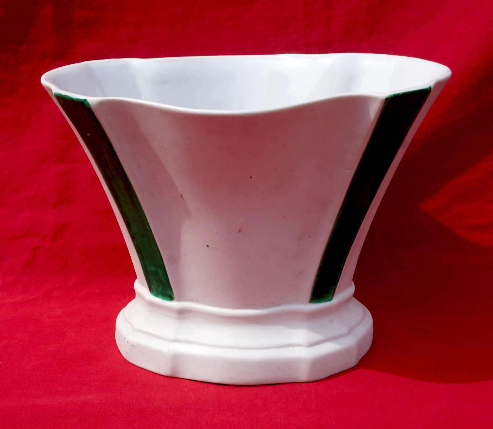 Porcelain Art Deco Jardiniere Oval Vase Centerpiece White Green 1930's