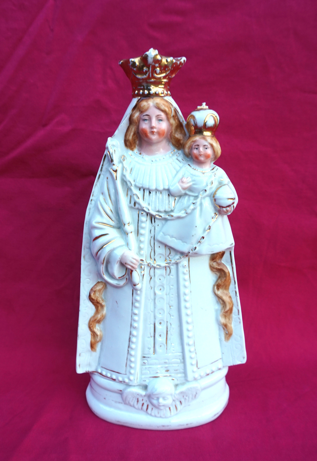 Madonna & Child Old Andenne Belgian Polychrome Gilt Porcelain 19th C