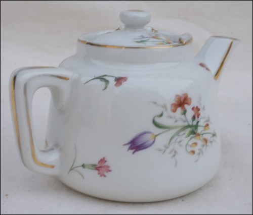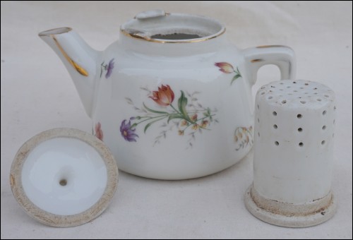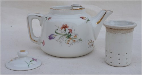 Aluminite Frugier Limoges Porcelain France Gilt Flowers Tea Pot