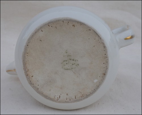 Théière en porcelaine à feu en aluminite de Limoges, invention de l?ingénieur René Frugier, vers 1900. Bel état, rare usures d'or. Signée sur son fond. Hauteur 9,5 cm, diamètre 10,5 cm.